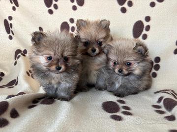 Cuccioli Spitz di Pomerania ( tedesco nano ) nati il 21/10/25 disponibili due femmine ed un maschio, attualmente completo primo ciclo di vaccinazione e due sverminazioni, genitori di mia proprietà entrambi con pedegree e visibili.