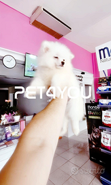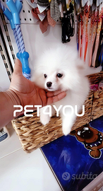 - pomerania, taglia piccolissima, maschietto, colore bianco candido