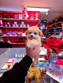 Disponibili meravigliosi cuccioli di taglia molto piccola, maltipoo colore champagne e albicocca, femmine e maschietti, due mesi e mezzo, cresciuti in appuntamento, abituati a usare la traversina, non perdono pelo, adatti anche per pet therapy, molto socievoli e giocherelloni, bellissimi e in ottima salute, svezzati con royal canin starter, in prenotazione anche cuccioli di barboncino, spitz di pomerania e maltese mini toy linea coreana