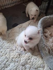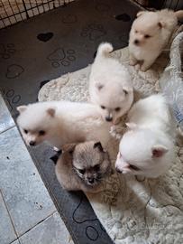 Sono 5 cuccioli di volpino spitzen di pomerania medio nati qui a casa mia il 06 febraio da genitori visibili sono tutti sani e belli sono 4 maschietti e una femminuccia chi vuole può venire a vederli li do via con libretto sanitario mikrocip due sverminazioni e due vacini al prezzo di 500 ? i maschietti 600 ? la femminuccia venite vi aspetto.