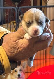 Vendo ultimo bellissimo maschietto welsh corgi pembroke bianco e fulvo con coda nato al 22 Novembre e pronto dopo due mesi. Il cucciolo sarà consegnato con pedigree vaccinato sverminato e con microcip. I genitori di nostra proprietà sono visibili in allevamento per altre informazioni chiamateci al 3473090910 grazie Maddalena e Pier