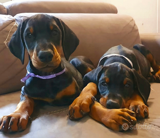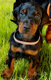 Disponibili cuccioli di Dobermann nero focato femmine e Maschi genitori selezionati,visibili e con un ottimo carattere, i cuccioli sono stati cresciuti a stretto contatto con noi e sono vivaci e socievoli. Hanno teste importanti e strutture forti, verranno ceduti vaccinati, sverminati microcippati e con il loro pedigree