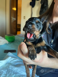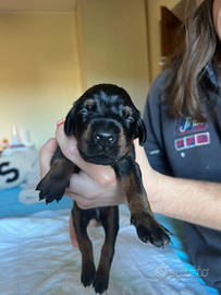Disponibili alla vendita dalla fine di gennaio '26 n. 10 cuccioli di dobermann nero focato, 5 femmine e 5 maschi, nati il 18 novembre '25 in ambiente famigliare. La madre è Black Star, figlia di Dreed dell'Antiqua Hirpinia ed il padre è Michele dei monti Cimini. Cucciolata lettera M. Entrambi i genitori hanno radiografie ufficiali "anche A" e "gomiti 0" ed esami ecocardiografici nella norma. Saranno consegnati con pedigree, sverminati, microchippati e con primo vaccino ricevuto.