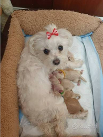 Sono cuccioli nati da mamma maltese e papà pinscher o pincher toy