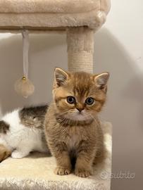 Disponibili splendidi gattini di razza British Shorthair, nati da accoppiamento selezionato tra esemplari di altissima genealogia. o Allevamento AGI con pedigree ufficiale o Discendenti da campioni nazionali e internazionali o Analisi genetiche complete effettuate su entrambi i genitori o Esenti da tutte le principali patologie feline: PKD, FIV, FeLV, ecocardio e screening completi I gattini sono cresciuti rigorosamente in ambiente domestico, abituati al contatto umano quotidiano e anche a dormire con i padroni. Questo garantisce un carattere dolce, equilibrato e molto affettuoso. Linea genetica di altissimo livello: o Portatori di geni chocolate e cannella (varianti rare nella razza) o Assenza di difetti come lo strabismo tipico di alcune linee British o Scottish o Selezione mirata per ottenere una linea di sangue pura e di grande pregio Genitori: Padre: Charlie - British Shorthair Lilac & White Bicolour (BSH c 03) Madre: Ariel - British Shorthair Black Golden Entrambi visibili, con pedigree e certificazioni. I gattini disponibili sono 3, cresciuti con massima cura e attenzione. Ideali sia per compagnia che per allevamento. Disponibili per visione dal vivo. Si cedono solo a persone realmente interessate e amanti della razza. Contattare in privato per ulteriori informazioni, foto e dettagli