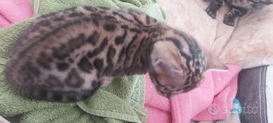 Splendidi cuccioli di gatto bengala nati il 12 marzo. Rara colorazione charcoal. I cuccioli vengono allevati in famiglia sviluppando quindi un carattere docile e socievoli. Vengono ceduti con pedegree da compagnia, doppia vaccinazione e sverminazione, microchip e visita veterinaria. Genitori visibili, padre campione eccellenza. I cuccioli godono di ottima salute e nutriti con alimenti di prima qualità. Disponibili maschi e femmine. Kit cucciolo, costante aggiornamento anche fotografico fino alla consegna, assistenza post vendita. Consegnamo personalmente centro e nord Italia
