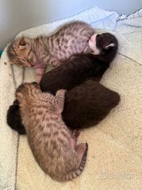 Kagome e Buio presentano i loro meravigliosi cuccioli Disponibili 2 femmine di colorazione Brown 1 maschio Black and white con maculature del bengala (sarà ceduto a rimborso spese) I cuccioli sono nati il primo aprile, saranno disponibili a fine maggio. Ceduti con sverminazione, abituati a cani, gatti, tiragraffi e lettiera. Saranno abituati anche ai bambini piccoli Per altre info e foto scrivetemi pure in privato