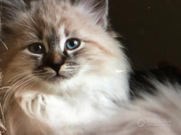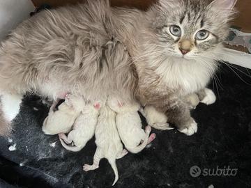 Allevamento certificato,Disponibile 1 cucciolata con 5 cuccioli di gatto razza Siberiana ipoallergenica colorazione Neva Masquerade nati martedi 29/04/2025 ceduti con regolare pedigree Enfi e certificati medici già sverminati e vaccinati e abituati ad usare la cassettina per i bisogni, genitori testati FIV e FELV, si accettano prenotazioni e si effettuano prove di allergia completamente gratuite e senza nessun impegno ..Per informazioni contattare Daniele tel.3801480711