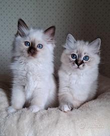 Disponibili da metà Giugno due maschietti color chocolate point e seal tabby point molto socievoli e giocherelloni. Saranno ceduti con libretto sanitario e contratto, 2 vaccinazioni, microchip, esame feci e certificato di buona salute, starter kit e giochini vari. Pedigree ANFI. Sanno usare la toilette anche con apertura dall'alto ed il tiragraffi.