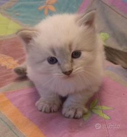 Disponibili con la seconda settimana di febbraio bellissimi e dolcissimi cuccioli di gatto razza siberiana ipoallergenica. I cuccioli sono nella colorazione brown tabby e neva masquerade maschietto. Blue tabby and white e neva masquerade femmlna.I cuccioli saranno ceduti a tre mesi di età con libretto sanitario attestante la buona salute, sverminazione e primo vaccino, abituati alla lettiera e al tiragraffi. Genitori visibili e testati per malattie infettive fiv e felv negativo. Per altre informazioni contattare via whatsapp al numero 3382242276.