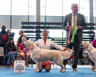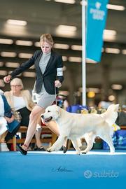 Veterinaria e Allevatrice - affisso ENCI "BLONDE IN GOLD" (ci trovate su FB e sito internet) propone cucciolata altissima genealogia in arrivo il 7 gennaio 2026: alcuni cuccioli ancora prenotabili! Cuccioli ceduti nella prima metà di marzo dopo i 60 giorni, con pedigree ENCI, microchip, certificazioni esenzione malattie ereditarie di 4 generazioni (displasia anche, gomiti, oculopatie, cardiopatie, test genetici), libretto sanitario con vaccinazioni e sverminazioni, certificato buona salute, puppy kit, contratto con garanzia ed assistenza professionale a vita (esperienza ultra ventennale). Papà Liam (Pinkerly Supersonic) è il Campione Mondiale in carica, oltre che Giovane Campione Italiano e Finlandese di Bellezza. Mamma Kayla (Goldon the Ceiling) è figlia di Samia Yusuf Omar e di Olvinglay Wolf Whistle (Campione Italiano ed Internazionale ed a sua volta figlio di Enterprise Oligarchia, Campione Internazionale, e di Primavera in Anticipo della Val d'Aveto, Campionessa Italiana, Inglese ed Internazionale e Best of Breed al Cruft 2019). È nipote di Granroche Irish Punk e di Anouk; Anouk è un cane da soccorso con brevetto SICS salvataggio in acqua, Pet Therapy, Croce Rossa ricerca in superficie ed è figlio di Inkey, cane da valanga del Soccorso Alpino Valdostano; Granroche Irish Punk è figlia di J.Ch. Alibren Toronado (Giovane Promessa ENCI, pluripremiato in expo e Campione Riproduttore, figlio del Campione Inglese Uk Ch Alibren Best Mate To Westervane JW pluri vincitore di prestigiose mostre quali Crufts e Migliore di Razza al Raduno del Centenario del Golden Retriever Club Inglese, e della Giovane promessa Inglese Alibren Rebecca JW) e di J. Ch. Granroche Paprika for Midnight Memories (figlia di Spencheal Fredastar, Campione Italiano di Bellezza e Campione Riproduttore), Campionessa Internazionale di Bellezza 2019 e Campionessa Macedone. Kayla e Liam hanno un carattere dolcissimo ed entrambi sono dual purpose con ottima attitudine al lavoro e sport cinofili.