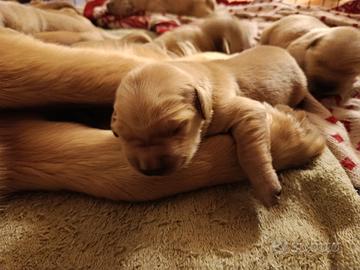 Cuccioli di Golden Retriever nati il 9/12/2025 disponibili a partire dal 10/02/2026. Entrambi i genitori con certificato esenzione displasia anche e gomiti, nonni con esenzioni cardiopatie e oculopatie.