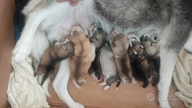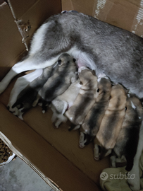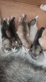Disponibili cuccioli di incrocio tra husky siberiano e husky malamut con doppia dose di sverminazione doppia vaccinazione e iscrizione canina aggiornero le foto dei cuccioli pregasi non perdi tempo e amanti degli animali verranno ceduti per metà gennaio.per qualsiasi domanda non esitate a chiedere sono disponibili 4 maschi e 1 femminuccia marrone NO PERDITEMPO
