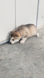 Ultimo cucciolo maschio e una femminuccia marroncina con okki azzurri, di incrocio tra husky siberiano e husky malamut verranno ceduti intorno al 20 di gennaio con doppia dose di sverminazione doppia vaccinazione e iscrizione canina. I genitori sono di mia proprietà per tanto visibili. per qualsiasi domanda non esitate a chiedere NO PERDITEMPO