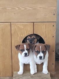 cuccioli maschi e femmine, pelo corto, bianco e marrone. cresciuti in ambiente familiare con madre e padre entrambi visibili con pedigreee dna depositato. si cedono dopo lo svezzamento a 70 gg completi di visita veterinaria, sverminazioni, primo vaccino, libretto sanitario, microchip, iscrizione anagrafe canina e pedigree enci roi