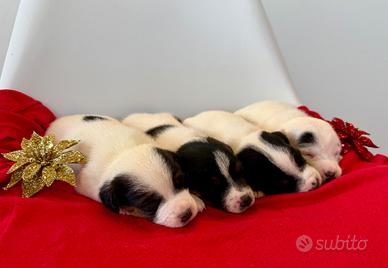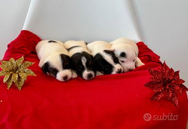 Cuccioli di Jack Russell pelo liscio, zampa corta. Nati e cresciuti in famiglia. Saranno ceduti dopo metà gennaio con pedigree, vaccinazioni, sverminazioni e microchip. Entrambi i genitori sempre visibili con i piccolini. Già visibili e prenotabili.