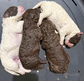 Cuccioli lagotto romagnolo. Cody del Capino Nero x Michaela dei Principi di Narni. Genitori esenti da displasia con lastre ufficiali CeLeMaSche e depositate ENCI. Genitori con DNA depositati ENCI. Madre con certificazioni per esenzione malattie genetiche. Genitori ottimi cavatori di tartufo. Nati il 4/4/2026 e verranno ceduti con ciclo vaccinale e pedigree. Su richiesta disponibile inviare copia pedigree e relative certificazioni.