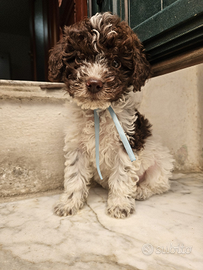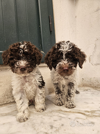 Vendo cuccioli d Lagotto romagnolo nati l'11 settembre di colore bianchi e marrone , i cuccioli sono in ottima salute e verranno ceduti con libretto veterinario , trattamento antiparassitario , doppia sverminazione e doppio vaccino . Sia la madre che il padre sono dei campioni nella ricerca del tartufo , i cuccioli sono anche ottimi come cani da compagnia .