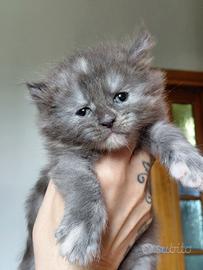 Ultimi bellissimi Cuccioli maine coon 3 maschietti nel colore black silver e red silver e 2 femminuccie blu tortie e black silver prenotabili pronti inizi maggio (il cucciolo piu grande) e pronti meta giugno gli altri, vengono ceduti completi di doppio vaccino trivalente doppia sverminazione contratto kit cucciolo microchip e pedigree da compagnia ministeriale Agi Si valuta a prezzo differente soggetto con pedigree da riproduzione Genitori testati HCM1 HCM3 PKD PKDEF SMA DNA tutti negativi fiv felv negativi SOLO SERIAMENTE INTERESSATI NO PERDITEMPO contatto al numero 328 3446096 per ulteriori foto e video