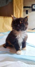 LEGGERE TUTTO GRAZIE!!! Siamo un allevamento di gatti pura razza Maine Coon certificato con affisso. Sono 4 Maschi nati il 07/02/26. Sono disponibili a raggiungere la nuova Famiglia a Maggio. Sono ben socializzati in modo da esaltare il loro carattere dolce e socievole, sanno usare in autonomia sia la lettiera che il tiragraffi e verranno ceduti con: 1- Pedigree da compagnia cioè con obbligo di castrazione 2- Doppio vaccino 3- Sverminazione preventiva 4- Microchip 5- Passaggio di proprietà 6- Libretto sanitario 7- Visita veterinaria con certificato di buona salute 8- Test feci di controllo (Giardia, Parvovirus e parassiti vari) 9- Contratto di cessione 10- Garanzia post cessione 11- Copia test genetici dei genitori (HCM, PKD, PKDEF, ATROFIA SPINALE MUSCOLARE E ATROFIA RETINICA GLICOGENOSI). ESITO NEGATIVO 12- Copia esami FIV E FELV dei genitori ESITO NEGATIVO Non sono in regalo e li si cedono non meno di 1000€! No perditempo ma contattatemi se veramente interessati!!!