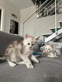 Genitori black silver shaded e black silver tabby blotched, con pedigree di altissima genealogia, ecocardio ok e testati per le principali patologie di razza, tutto visibile su richiesta.