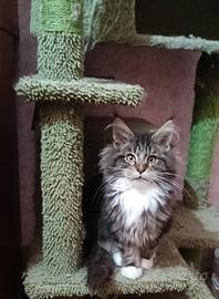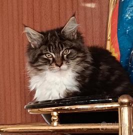 Disponibili a partire da fine Novembre presso allevamento amatoriale con affisso, cuccioli maschi e femmine di Maine coon di diverse età e colorazioni (Red silver, black silver, tortie, blu, blu crema, crema, black tabby) tutti con pedigree, nati da genitori HCM N/N ed esenti fiv e felv. Vengono ceduti sverminati, visitati, con libretto sanitario, vaccinazioni, pedigree e contratto di cessione da compagnia o da riproduzione.