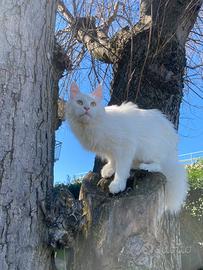 Cuccioli di Maine Coon: 1 maschietto grigio e 1 femmina bianca con doppio colore degli occhi. La cucciola femmina è sorda in quanto è una caratteristica di questi gattini con occhio azzurro, mentre il maschietto sente benissimo. Le ultime due foto sono i genitori (nero il papà e bianca la mamma). Verranno ceduti da inizio aprile con primo ciclo di vaccino.