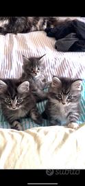 Vendo ultimi due splendidi maschietti Maine Coon, nati il 4 febbraio e disponibili a partire da fine aprile. I cuccioli sono cresciuti in casa con tanto amore, abituati alla presenza di altri gatti e alla vita domestica. Sono dolci, socievoli e già ben avviati al contatto umano. ? Valuteremo molto attentamente le famiglie a cui verranno affidati, per garantire loro un ambiente sereno e una vita felice. Per prezzo e qualsiasi altra informazione contattateci.