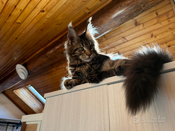 Cuccioli Maine coon pedigree FIAF nati il 07/07. Test feci batterici e virali negativi, test genetici genitori n/n. Dolci e coccolosi, aspettano la loro famiglia per sempre. Gradita presentazione.