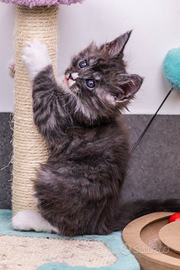 Presso l'allevamento di Maine coon Crann Bethadh sono disponibili cuccioli di Maine coon con Pedigree Anfi. Verranno ceduti intorno ai 3 mesi di età con doppia vaccinazione, microchip, sverminazione, antiparassitario, copia dei test genetici ed ecografici dei genitori e puppy kit