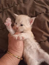 Cucciolo Maine Coon d'alta genealogia, certificati con pedigree, pronti metà giugno, genitori con tutti quanti i test genetici del Maine coon perfetti (n/n), con eco cardio annuale perfetto, fiv felice negativi, esenti parassitosi perché test per parassiti e per guardia vengono fatti con regolarita. I cuccioli crescono in casa e fanno la vita della Famiglia, abituati al bagnetto, ai rumori domestici, alle persone e ai cagnolini, usano lettier e tiragraffi e sono liberi in casa (NO GABBIE!). Verranno ceduti con contratto da compagnia (possibilità di PEDIGREE APERTO a persone competenti), copia dei test e dei libretti dei genitori, pedigree, certificato di buona salute del veterinario,libretto sanitario con trattamenti e vaccinazioni effettuate, contratto con garanzia fino all'anno di eta, test parassiti e guardia negativo.