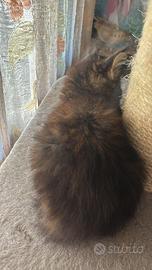 Vendesi bellissima cucciola Maine Coon al compimento del 3° mese, disponibile dai primi di maggio, vaccinata e sverminata, abituata a lettiera e tira graffi nata e cresciuta in ambiante familiare a contatto con altri gatti adulti.....genitori visibili in famiglia per maggiori informazioni chiamare Angelica 3517075888