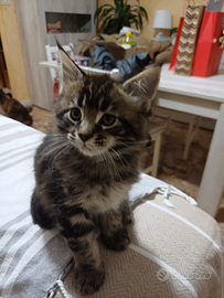 Splendidi cuccioli di Maine coon nati il 14/11/2025, 1 femminuccia tortie e 1 maschietto brown tabbie, verranno ceduti a partire da inizio Febbraio sverminati e con ciclo vaccinale completo. No pedigree. Genitori testati filv/felv. Maggiori informazioni in privato.
