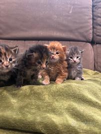 Disponibili meravigliosi cuccioli di Maine Coon, allevati con amore in ambiente familiare. Sono gattini sani, equilibrati e abituati al contatto umano, ideali sia per famiglie che per appassionati della razza. Caratteristiche: - Razza: Maine Coon - Colori: Red tabby blotched , blu crema tortie , tortie black - Genitori testati geneticamente e visibili - Sverminati e vaccinati (libretto sanitario incluso) - Abituati a lettiera e tiragraffi I cuccioli hanno un carattere dolce, affettuoso e molto socievole. Possibilità di inviare foto e video su richiesta.