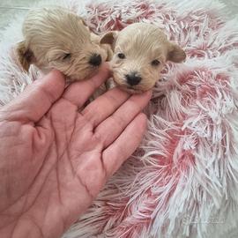 Maltipoo taglia piccola da genitori Maltese e Barboncino Red. Si trovano in provincia di Cagliari. Cucciolata casalinga. Visibili anche i genitori. Si consegnano con visita del veterinario, ciclo vermifugo e primo vaccino. Contattare solo se seriamente interessati.