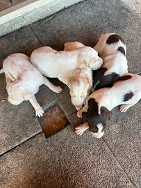 Come da titolo , disponibili bellissimi cuccioli di braccopointer maschio , 3 bianco arancio , 2 bianco marrone fegato , nati il 20 maggio 2025 , da genitori entrambi impiegati nella cerca del tartufo , verranno ceduti a 80 giorni con sverminazioni e vaccini completi (2 ) complet di libretto sanitario , do e pretendo massima serietà , non rispondo a messaggi e mail , chiamare sono se realmente interessati ,astenersi persone affariste e senza soldi , la cosa più importante non scambio con nulla ! Se chiamate per bloccare un cucciolo manderete caparra di 100 euro , a parole non blocco nulla! Grazie