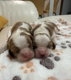 Disponibili per la prenotazione 2 maschi (1 Blenheim, 1 tricolor) di Cavalier King. Genitori visibili e testati. Pedigree con ottime linee di sangue. Verranno consegnati con il libretto vaccinazioni, sverminati e certificato di buona salute. Possibilità di consegna in tutta Italia. Per info telefonare No perditempo.
