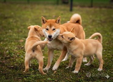 disponibili maschi cuccioli di mamma shiba inu con pedigree e papa akita anche lui con pedigree