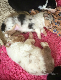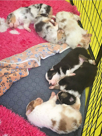 Ci sono femmine nere tricolore, blue merle e maschi red merle.