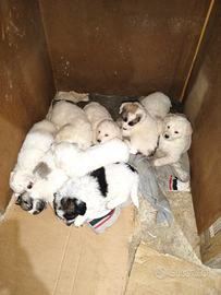Si cedono cuccioli meticci futura taglia media a pelo lungo, nati il 13/12/2025. La cucciolata è composta da 7 piccoli: 5 maschi e 2 femmine, con mantello bianco e macchie nere o marroni chiaro. I cuccioli sono in ottima salute e cresciuti in ambiente familiare con la madre (visibile in foto) che ha un carattere socievole e territoriale.