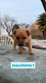 Cuccioli meticci da adottare.Si tratta di tre femmine e due maschi.Taglia medio/piccola ,pelo corto.Ho inserito pure la foto dei genitori.Disponibili dal dieci di marzo.Chiedo 10€ cadauno.