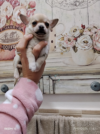 Vendo 2 splendidi cuccioli di chihuahua Toy originali di 69 giorni,già svezzati, sverminati,anti parassitario inserito, cuccioli di taglia piccolissima Toy, abituati alle traverse, genitori piccolissimi,da adulti non superiore 1.500 kg, disponibile 1 femmina ed 1 maschio,si prega di contattare su wathsapp se realmente interessati,e non fare perdere tempo,no persone del nord,non spedisco,non insistere sulla richiesta,non è trattabile