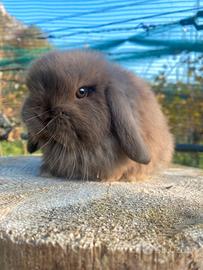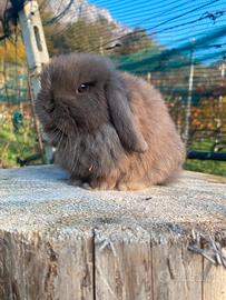 Disponibili cuccioli di coniglio minilop colorazione choco e choco harli, disponibili 3 maschi. Saranno ceduti trattati preventivamente dai coccidi e vaccinati per un anno da tutte e tre le malattie, con libretto sanitario e visita veterinaria.