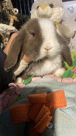 Con il cucciolo viene dato un kit banny di benvenuto comprendente cibo e fieno per una settimana una graziosissima ciotola e una palettina per pulire la lettiera. Offro servizio post vendita per seguirti nella tua avventura con suggerimenti e consigli.