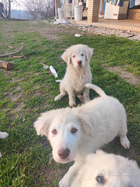 Cedo 1 maschio e 1 femmina di pastore abruzzese incrociato probabilmente con il doberman. Hanno 4 mesi e sono già svernati e vaccinati sono disponibili da subito. Già sono abituati a stare con le pecore ma anche con i bambini e gatti. Hanno gli occhi chiari. Preferisco dargli via insieme