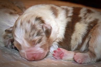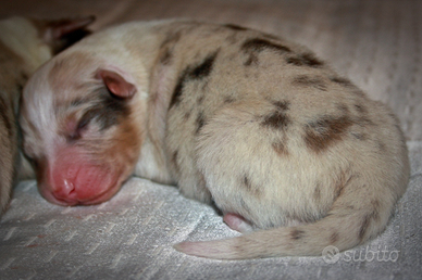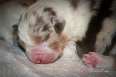 Cuccioli di pastore australiano (australian shepherd-Aussie) con pedigree nati il 24/01/2026 saranno ceduti dopo il compimento dei 60 giorni. I cuccioli saranno vaccinati, sverminati, con visita oculista FSA, libretto sanitario e piccolo bookfotografico di titte le fasi della loro crescita. La cucciolata nata e gestita in ambito familiare avrà modo di avere contatti con bambini, altri cani, gatti ecc. Genitori testati, esenti displasia anca, gomito ed oculopatie, entrambi dal carattere molto tranquillo e facilmente gestibili. Attualmente disponibili: