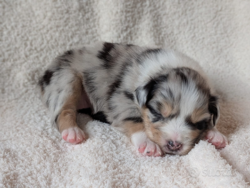 Disponibilità due femmine , una Blue merle coda corta, red tricolor coda corta e maschio black tricolor coda lunga.