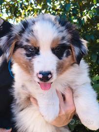 Cuccioli Pastore Australiano Blue merle dolcissimi e dagli occhi incantevoli ? Disponibili meravigliosi cuccioli di Pastore Australiano (no pedigree), nati il 23 febbraio e cresciuti in ambiente familiare. 2 cuccioli Blue merle Sono maschi Cuccioli bellissimi, equilibrati e molto affettuosi, abituati al contatto umano e alla vita in casa. Perfetti per chi cerca un compagno attivo ma anche dolce e collaborativo. Verranno ceduti con: 3 sverminazioni effettuate primo vaccino libretto veterinario seguiti con cura fin dai primi giorni Disponibili da subito Solo a persone serie e consapevoli della razza (attiva e intelligente). Scrivimi per info su whatsapp
