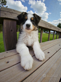 Disponibili alla prenotazione ultimo bellissimo cucciolo di Pastore Australiano presso allevamento riconosciuto enci/fci. Disponibile maschio tricolor black nbt. Il cucciolo è nato il 5 ottobre ed è diponibile da subito con microchip, 2 vaccini, sverminazioni, visita oculistica ufficiale e puppy kit. I cuccioli vengono cresciuti in ambiente familiare, a contatto con bambini, cani adulti e gatti. I genitori sono esenti displasia anca e gomiti, esenti da patologie genetiche e da oculopatie.