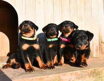 Cuccioli BEAUCERON (cane da PASTORE di BEAUCE antica razza francese) disponibili 1 maschio e 3 femmine con mantelli nero focati nati, il 23 Ottobre 2025.